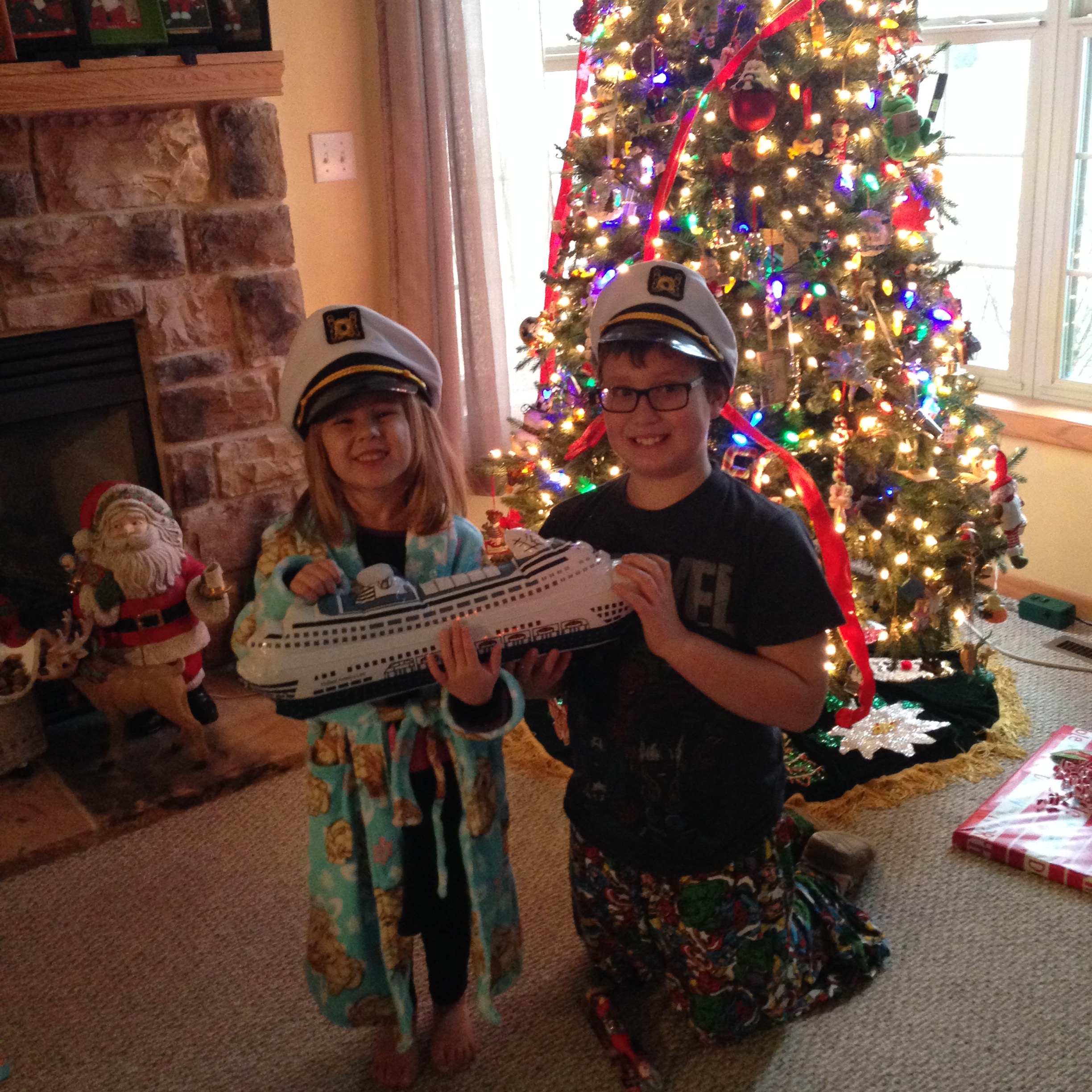 We kept it a secret until Christmas morning, at which time the kids unwrapped an inflatable cruise ship and captains hats to unveil the “big surprise.” It was a hit! Kids were excited and talking non-stop about sleeping on a ship and going to the Bahamas.